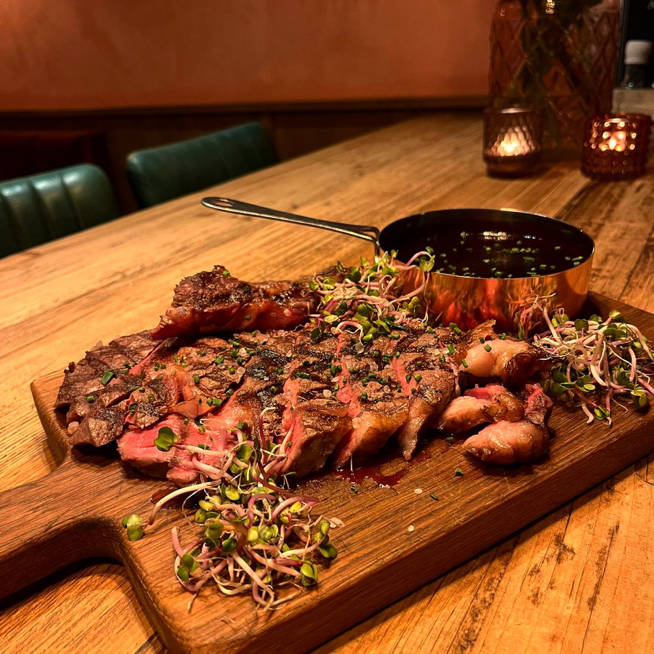 De gerechten zijn herkenbaar, maar altijd met een eigen twist. Jannick: 'Een biefstuk kun je overal eten. Wij maken er iets bijzonders van. Andere saus, anders geportioneerd. We serveren bijvoorbeeld een côte de boeuf op een plank voor twee personen. Door de kwaliteit van het vlees, de portsaus en de presentatie valt die ontzettend goed in de smaak bij onze gasten.'